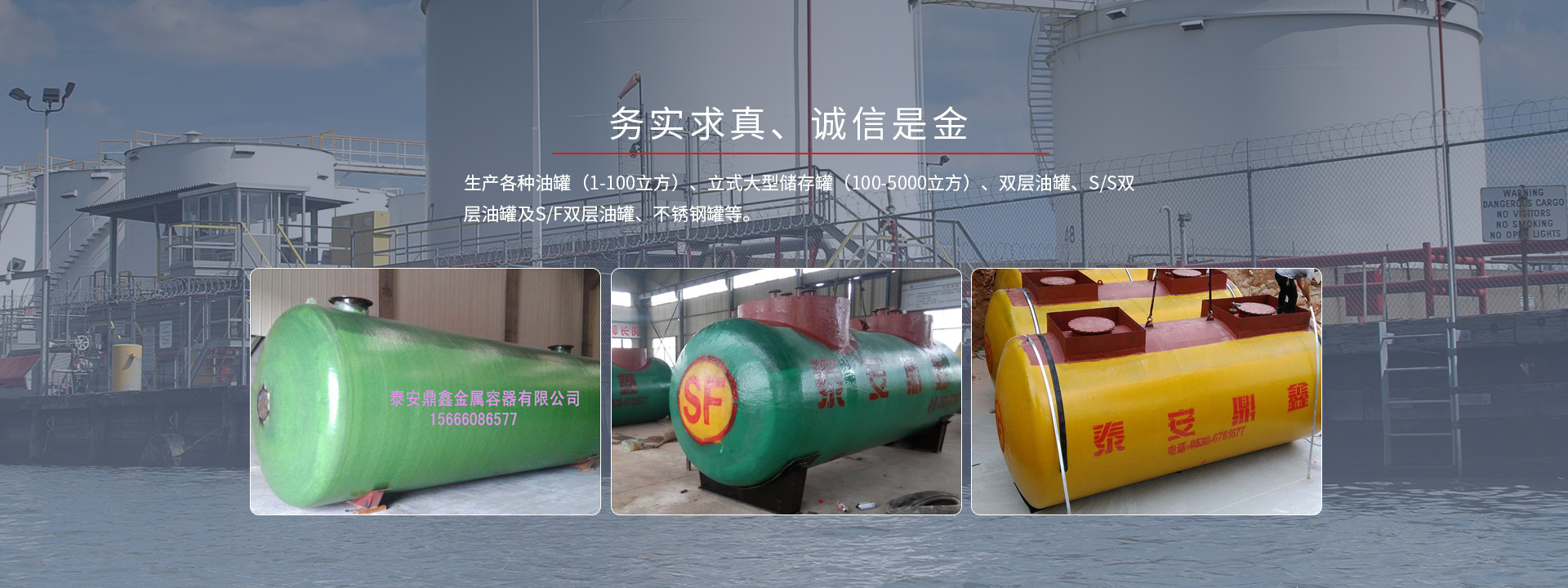 泰安市鼎鑫金屬容器有限公司主營(yíng):油罐、雙層油罐、SS雙層油罐、SF雙層油罐、不銹鋼油罐等金屬容器。